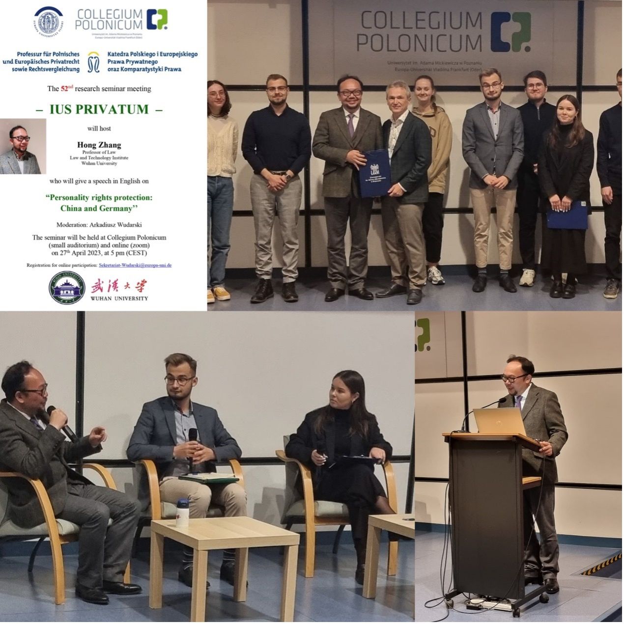 On April 27, 2023, Prof. Hong Zhang was invited by Prof. Dr. Arkadiusz Wudarski//www.rewi.europa-uni.de/de/lehrstuhl/pr/polprivrecht/index.htmlfrom Europa-Universität Viadrina Frankfurt Oder //www.rewi.europa-uni.de/de/index.htmlto deliver an academic lecture entitled “Personality rights protection: China and Germany” for the faculty and students of the Law School of the University. Prof. Hong Zhang elaborated the differences between the Chinese Civil Code and the German Civil Code firstly. Then, he taught the relevant provisions of the protection of personal rights and the attributes of the right of personality in the Chinese and German civil codes, as well as the similarities and differences between the protection of personal information in China and the European Union. This lecture hosted by Dr. Arkadiusz Wudarski was held both offline and online. Colleagues from Germany, Poland, Turkey, Bulgaria, Egypt and other countries and regions participated in the discussions. After the lecture, Prof. Hong Zhang and Prof. Dr. Arkadiusz Wudarski jointly agreed on a further cooperation plan between the two parties.