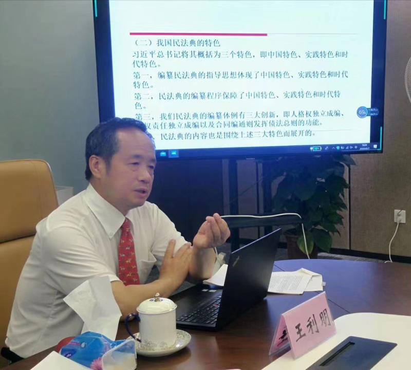 Then, Prof. Wang explained the Chinese characteristics, practical characteristics and Era characteristics of our Civil Code from five aspects. First, the Civil Code fully reflects the needs of our society. Second, the Civil Code adapts to the people’s pursuit of a better and happy life. Third, the Civil Code responds to the new demands of the Internet, high-tech, and big data times. Fourth, the Civil Code has also responded to environmental protection and ecological maintenance. Fifth, the Civil Code conforms to the trend of economic globalization.