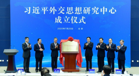 On July 20, 2020, the inauguration ceremony of the Xi Jinping Thought on Diplomacy Research Center was held in Beijing, with State Councilor and Minister of Ministry of Foreign Affairs Wang Yi unveiling the plaque and delivering a speech at the inauguration ceremony, attended by relevant comrades in charge of the Publicity Department, the Central Policy Research Office, and the Party History and Literature Research Center of the CPC Central Committee. Prof. Huang Zhixiong, Vice Dean of our school, was selected as the first batch of invited experts of the center.