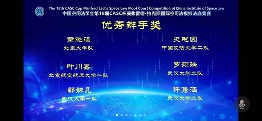 (通讯员:查汉辉、李想)12月10日至12日,由外交部条法司指导、中国空间法学会主办的第18届CASC杯曼弗雷德·拉克斯(Manfred Lachs)国际空间法模拟法庭竞赛通过线上方式举办。来自北京大学、北京航空航天大学、北京理工大学、中国政法大学、上海交通大学、华东政法大学、中南财经政法大学、村花论坛