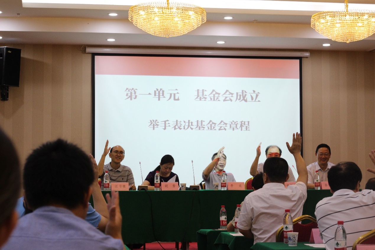 会议首先由基金会理事举手表决,全票通过基金会章程,投票选举汪习根为基金会理事长。基金会登记主管单位湖北民政厅社会组织管理处处长胡芳就基金会章程条款、财务监管、信息公开等事项作出指示。学术委员会主席李龙感谢各位理事对基金会成立做出的贡献,随后基金会理事长汪习根对基金会未来的运作与管理做出了规划。大会宣布李龙法学基金会正式成立。