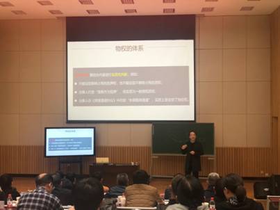 教师的教育教学水平和风采。武亦文老师的参赛主题是“物权法定原则”。他先以“祖母的遗愿”为案例,引出讲授内容。通过“法律在当事人设定物权时,只允许其做选择题,且不能变更选项内容”的类比,简明生动地揭示了物权法定的内涵。在解释了物权法定的主要原因与违反该原则仅产生债法效力的法律后果后,用一系列事例阐明,物权自由尽管能充分满足当事人所寻求之权利安排,但可能带来交易成本提高等更多弊病,进而引出“物权法定主义的缓和”这一更合理的解决路径。最后,武老师以《民法典》物权编当中新规定的居住权制度对开场部分的“祖母的遗愿”进行了回应。