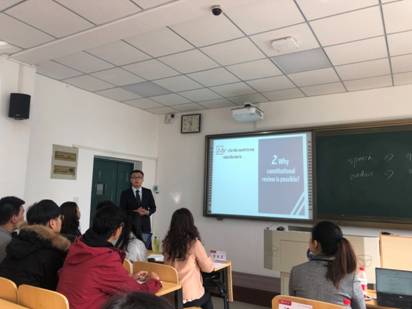 黄明涛老师参加的是全英文组比赛,他以全英文课程“英美立宪导论”中的“合宪性审查的功能”为授课主题,通过对一宗著名案件—焚烧国旗案——的分析,将大家带入到对美国合宪性审查制度的学习之中,介绍了相关的宪法理论、法律方法,并总结了该制度的两大功能,即确保公权力机关合宪运作、同时为公民权利提供救济。黄老师饱满的精神状态和流畅的讲解分析,给在场同学与评委留下了深刻印象。