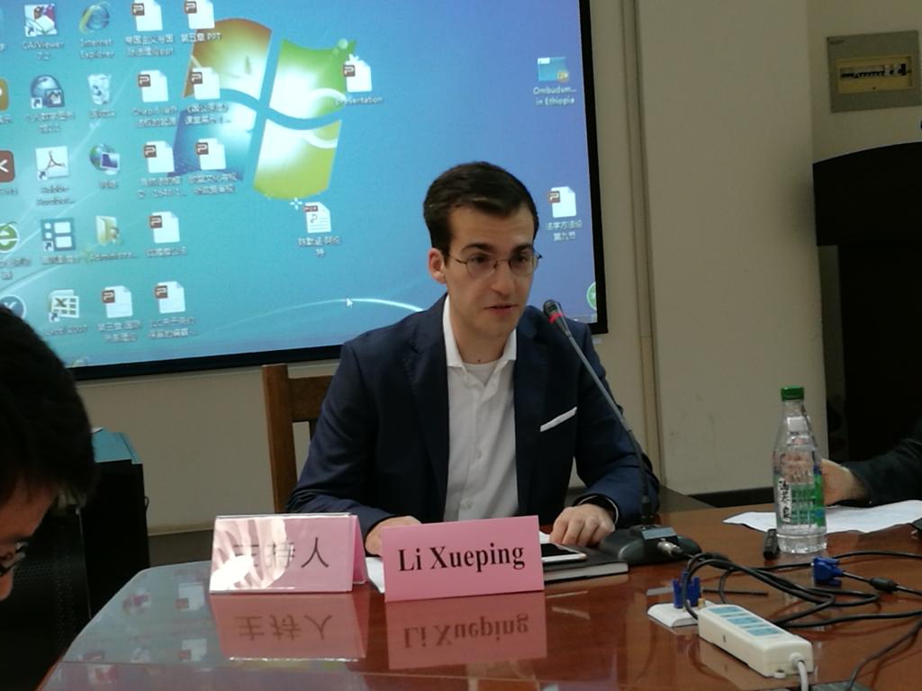 副院长祝捷教授、国际法所副所长聂建强教授、教师代表Ignacio de la Rasilla del Moral、石磊、甘勇和朱磊。项目主任李雪平教授主持见面会。