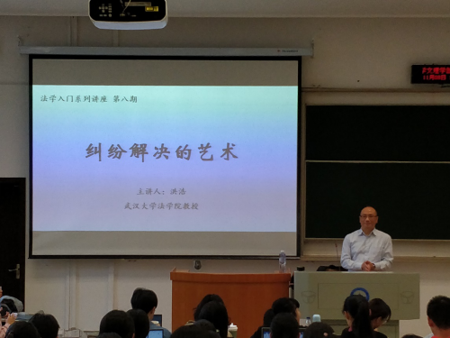 两个小时的讲座时光悄然流逝,本次讲座中,洪老师围绕“纠纷解决的艺术”这一主题,清晰明畅地将问题层层铺开,通过援引古今中外的具体事例使理论浅显化、生动化,同学们受益匪浅,对纠纷解决以及诉讼法的内涵有了更深刻的理解与体会,同时更明确了法律人的重要使命。讲座最后在全体新生的热烈掌声中圆满结束。