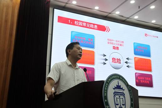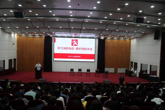 在模拟法庭举办消防安全教育专题培训。受湖北省消防救援总队委托,武汉市火人公益宣传队应邀为全体2020级本科新生进行消防安全专题培训。