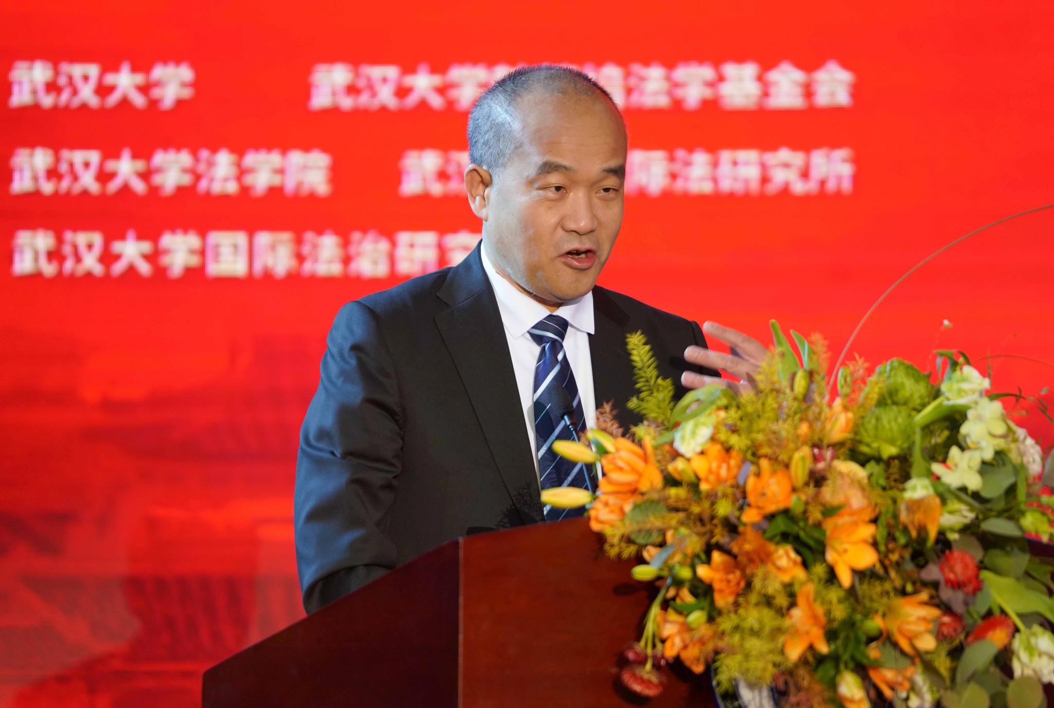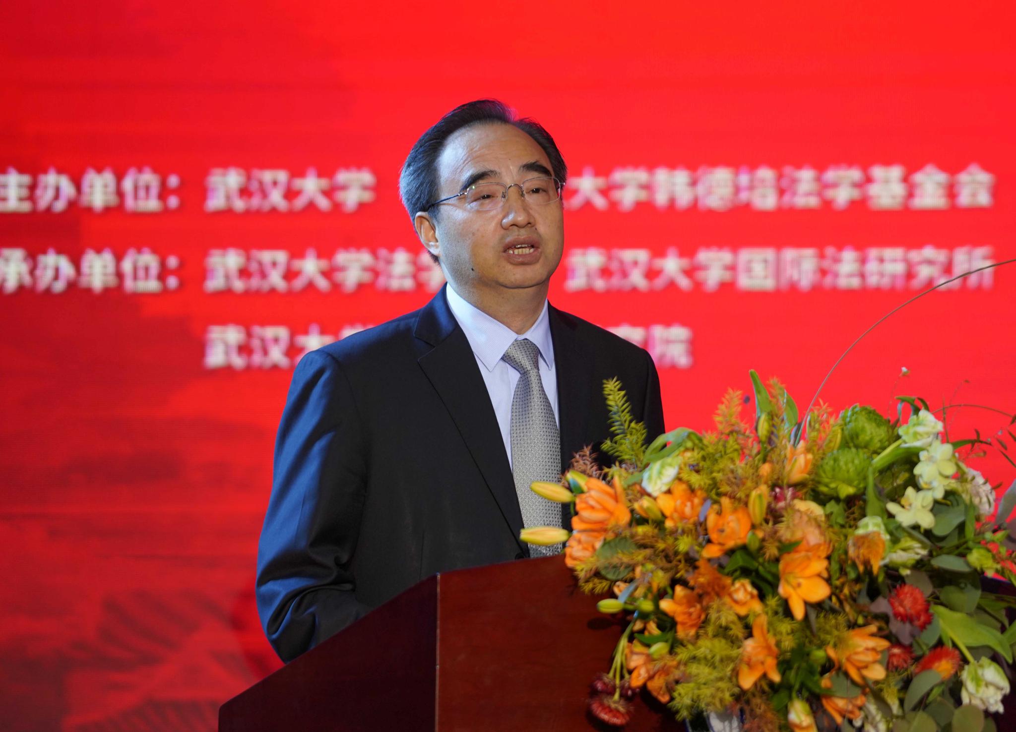 作为中国法学的研究重镇,要以习近平法治思想为指导,积极参与中国法治建设实践,为新时代全面推进依法治国战略,贡献武大智慧和武大力量。他鼓励韩德培法学基金会坚持完善韩德培法学奖的组织建设和工作规范,认真办好每一届评选活动,使之真正成为法学界高水平的、标志性的学术成果奖项,为繁荣我国法学理论研究、推进社会主义法治建设做出应有的贡献。