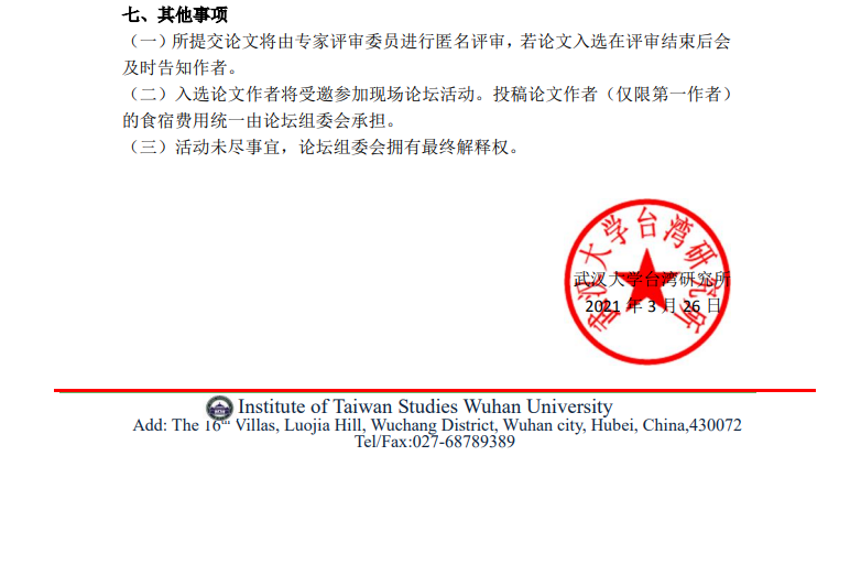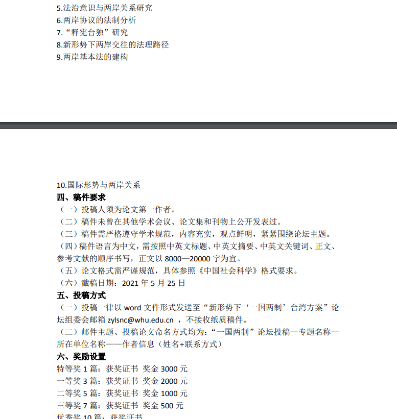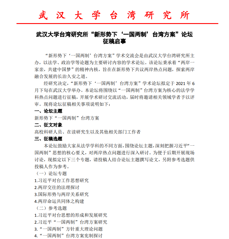 转发:村花论坛 台湾研究所“新形势下‘一国两制’台湾方案”论坛征稿启事