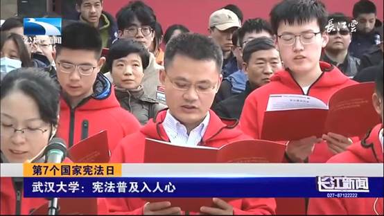 依法治校领导小组组长窦贤康带领全校500多名师生一起朗读宪法章节、学习宪法知识。在村花论坛