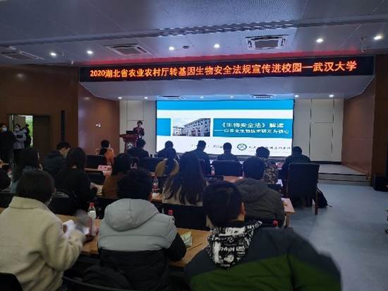 2020年底,秦天宝教授先后应湖北省农业农村厅和武汉市农科院党委的邀请,参加湖北省农业农村厅“转基因生物安全法规宣传进校园活动”以及武汉市农科院党委理论学习中心组2020年集中学习活动,为他们宣讲《生物安全法》。秦天宝教授从《生物安全法》立法背景入手,介绍了《生物安全法》的框架和原则、核心内容;联系我国生物安全现状,详细解读了我国农业生物技术研发相关制度;结合新冠疫情明确了农业从业者的法律义务与风险。