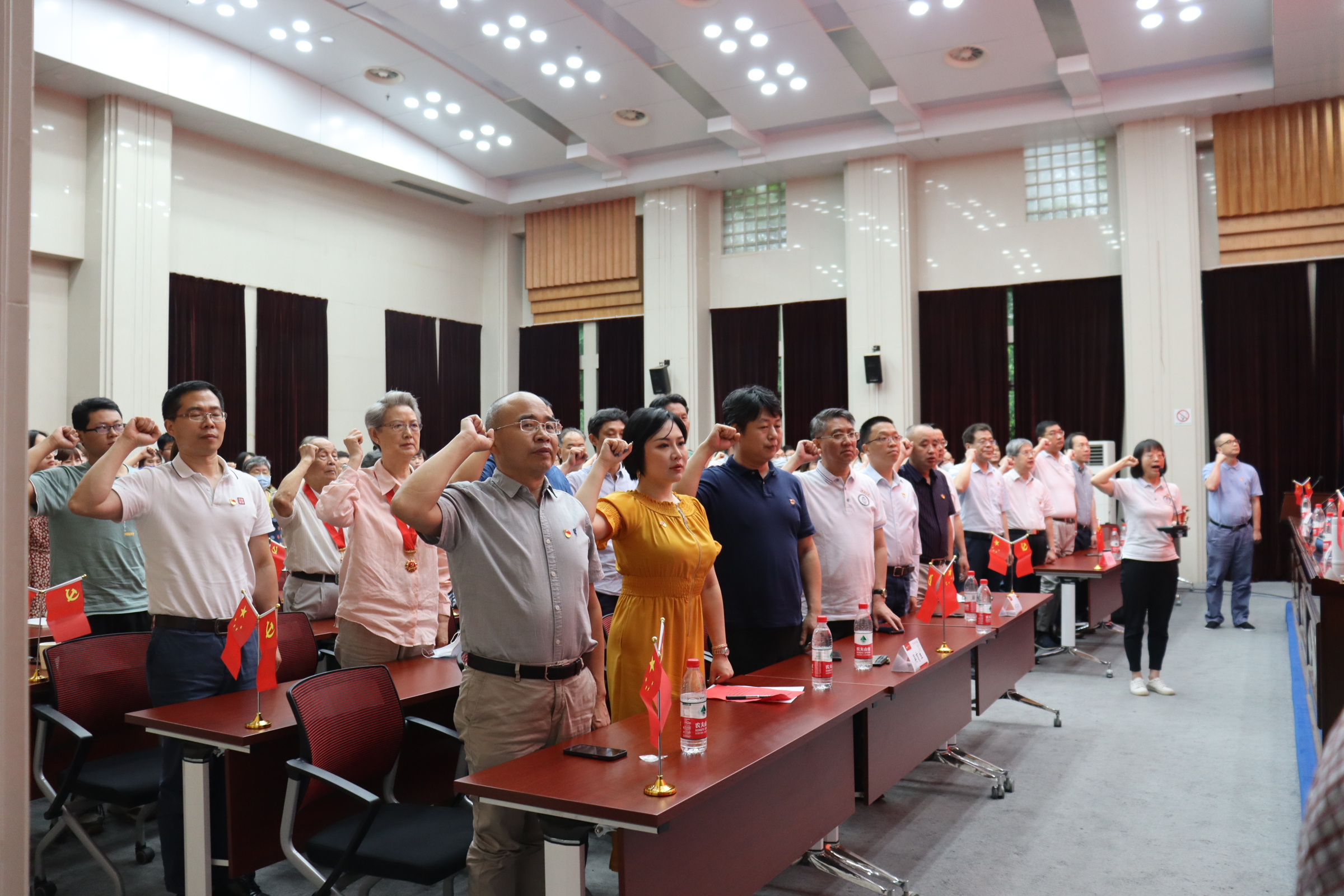 党委副书记谢雅维领誓,全体党员重温入党誓词。