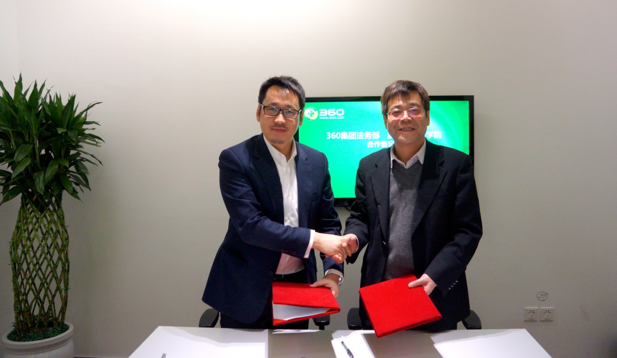 院长冯果教授、副院长黄志雄教授前往奇虎360公司,同360公司副总裁兼总法律顾问许坚先生、360公司法律研究院总监赵军先生等人就双方在网络法领域的合作进行洽谈,冯果院长与许坚副总裁兼总法律顾问共同签署了《北京奇虎科技有限公司与村花论坛-性爱论坛-亚洲论坛