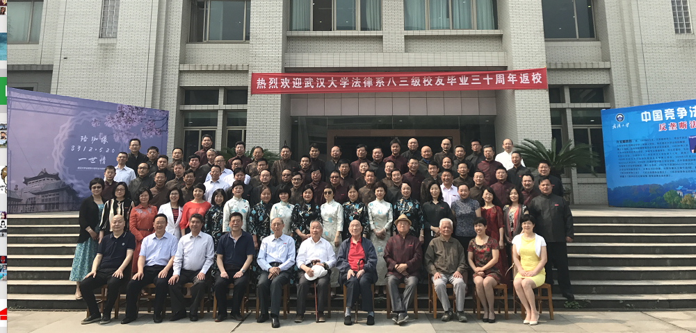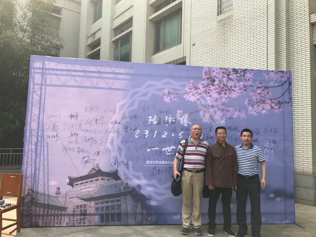 大楼前合影留念并在签名墙上签名,记录下毕业三十年后再回珞珈的珍贵瞬间。