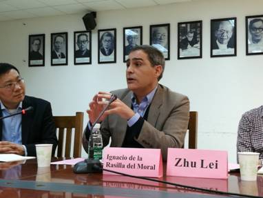 副院长祝捷教授、国际法所副所长聂建强教授、教师代表Ignacio de la Rasilla del Moral、石磊、甘勇和朱磊。项目主任李雪平教授主持见面会。