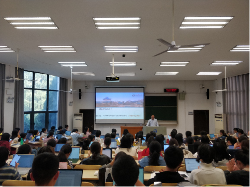 教授洪浩老师。2019级全体本科新生参加了本场讲座。