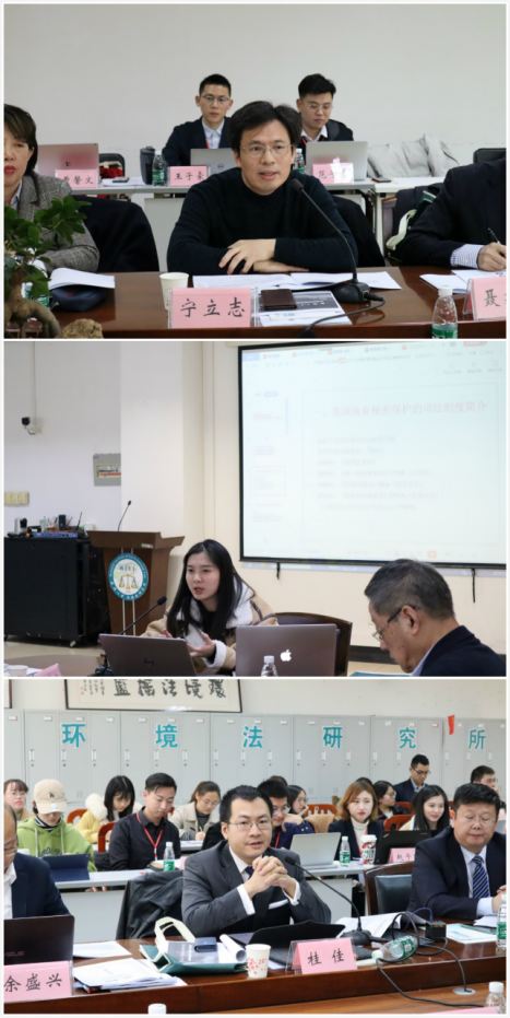 知识产权与竞争法研究所所长宁立志教授主持。第一位专题报告人是珠海课题组成员王茗,报告主题为“美国商业秘密司法保护及其对中国高新技术企业的影响”。王茗同学首先对美国商业秘密保护的司法及执法制度进行了简要回顾,其次通过探析美国商业秘密保护典型案例指出目前存在的难点问题,最后提出中国高新技术企业的应对策略。环球律师事务所合伙人桂佳律师对王茗同学的报告进行了点评。桂佳律师指出,不仅中国商业秘密保护法律和美国商业秘密保护法律存在区别,美国商业秘密保护法律内部也存在州法和联邦法的区别,中国高新技术企业赴美诉讼的过程中应特别注意这一区别。