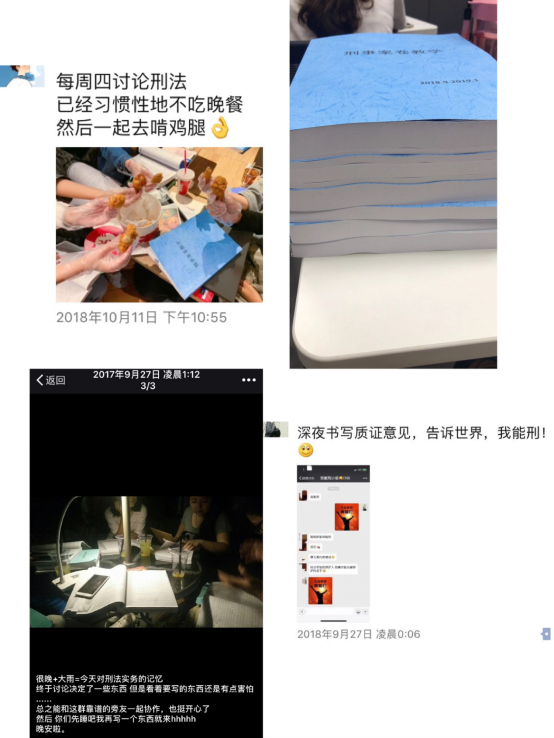 “创新性实务课程理念,卷宗教学以及多样的教学方式,翻转课堂同时结合老师评述指点,从直观的角色扮演到体验式的犯罪心理教育的设计,从读取、聆听、反馈、总结到辩论、抽象、升华。不论从任何一个角度和标准进行评价和总结,结果都是优秀。……2018年1月7日,最后一堂课在考试期间以多方辩论的形式为这堂课画上句点,可它留给我的影响绝对不止于此时此刻。”
