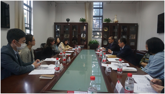 学校国际交流部部长李晓述、副部长罗安娜出席座谈会。湖北省委外办欧非处副处长周舟陪同访问。