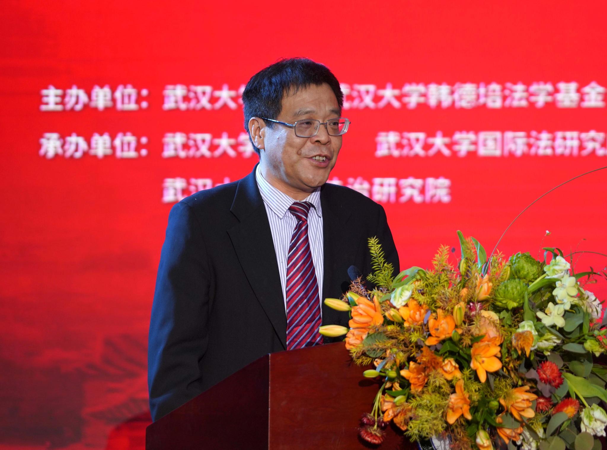 作为中国法学的研究重镇,要以习近平法治思想为指导,积极参与中国法治建设实践,为新时代全面推进依法治国战略,贡献武大智慧和武大力量。他鼓励韩德培法学基金会坚持完善韩德培法学奖的组织建设和工作规范,认真办好每一届评选活动,使之真正成为法学界高水平的、标志性的学术成果奖项,为繁荣我国法学理论研究、推进社会主义法治建设做出应有的贡献。