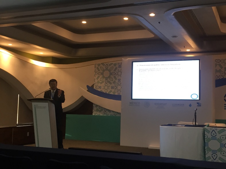 秦天宝教授做了“以环境公益诉讼保障水安全”的专题报告。报告简要介绍了中国环保法庭和公益诉讼发展的情况,结合近期发生的三起水污染公益诉讼案件,重点分析了中国通过环境公益诉讼的方式来保障水安全的意义和不足,并提出了改进的方向和具体建议。报告结束后,秦天宝教授回答了来自美国和墨西哥听众的提问。